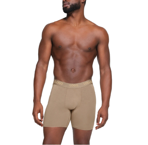 Oem Odm Heren Boxershort Kofferbak Op Maat Gemaakt Polyester Ondergoed Met Ademende Tailleband Klein Moq Lange Been Print Patroon Logo